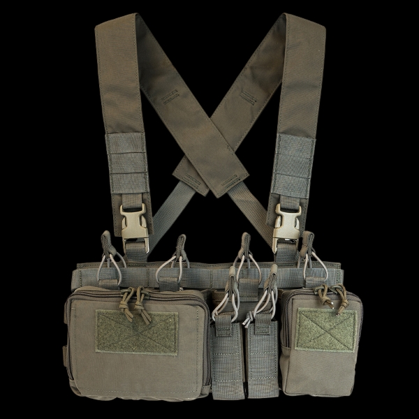 The D3CR™-H addresses the same mission as the original D3CR™, but has been slightly redesigned to support .308 platforms. Optimized for work in urban, vehicle, rural and other confined settings, the Disruptive Environments™ Chest Rig was built to be worn as a stand alone system with a detachable X-harness or clipped into a armor platform equipped with a quick release system.