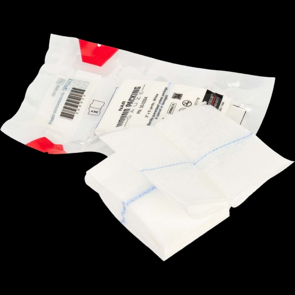 North American Rescue’s Wound Packing Gauze is a compact, easy to use, Z-folded gauze designed for both linear wound packing and basic bandaging. NAR’s Wound Packing Gauze can be used to control hemorrhage when applying direct pressure utilizing wound packing techniques, in conjunction with a compression bandage, as backing gauze for hemostatic dressings, or for minor wound bandaging. Its low cube space requirement and rugged, durable vacuum sealed packaging make it easy to fit in both individual first aid kits and medic kits. The gauze is sterile and pliable, enabling it to be easily handled during patient care and to conform to wound shapes for best results.